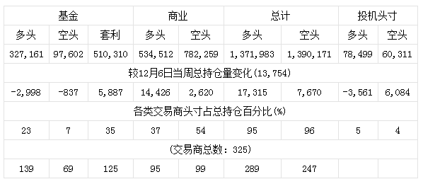 美国商品期货交易委员会(CFTC)最新公布截止12月13日当周NYX原油期货分类持仓报告: 合约单位:1000桶总持仓量:1450482