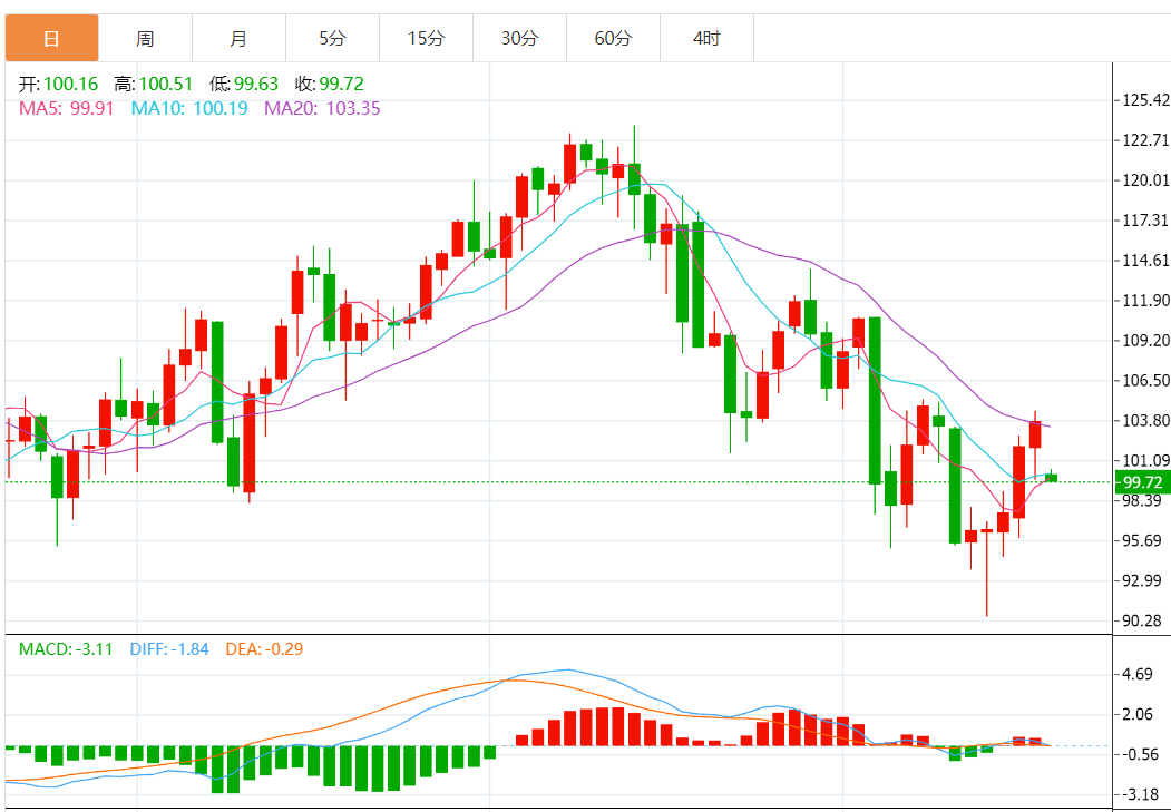 周三WTI原油小幅走低,这表明多日反弹可能结束,WTI反弹至每桶100美元以上。美元回落为价格提供了顺风,降低了外国买家交易以美元计价的商品的成本。然而,美元走软,亚太地区的股票指数正在上涨。 基本面分析 在今晚美国能源信息署(IA)的美国库存报告公布之前,交易员可能会减少石油产量。根据彭博社的一项调查,交易
