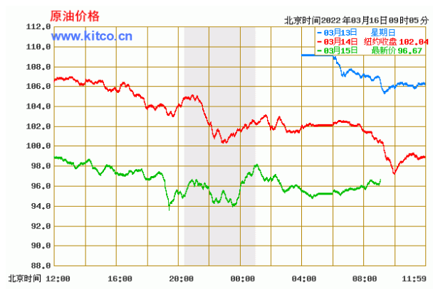 布伦特原油价格实时(2022年3月16日)