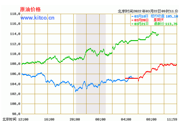 布伦特原油价格实时(2022年3月22日)