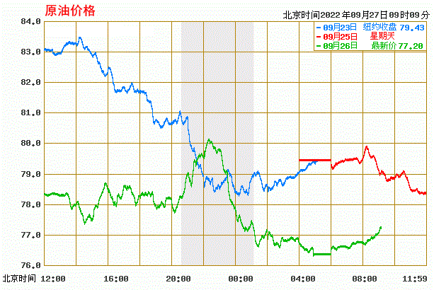 WTI原油走势图_WTI原油价格实时(2022年9月27日)