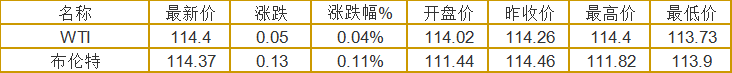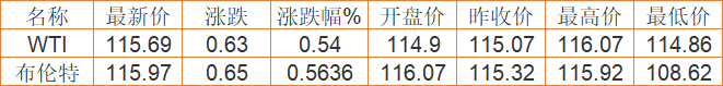 国际原油期货最新价格(2022年5月24日) 备注:以上国际原油价格仅供参考,请以官方价格为准。