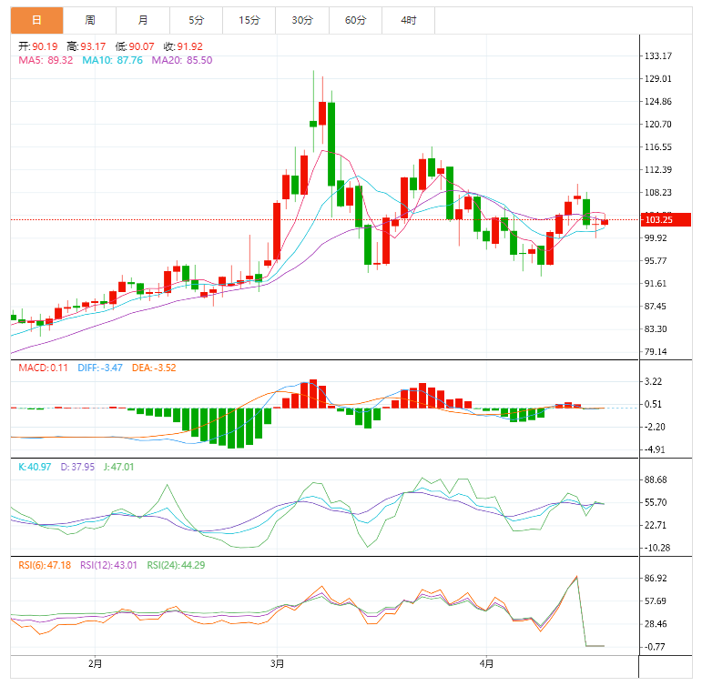 WTI原油走势图_WTI原油价格实时(2022年4月20日) 备注:以上国际原油价格仅供参考,请以官方价格为准。