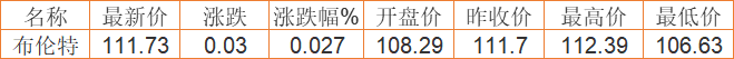 布伦特原油价格实时(2022年4月14日) 备注:以上国际原油价格仅供参考,请以官方价格为准。