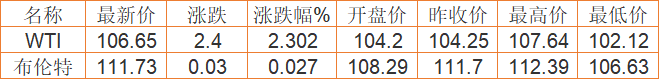 国际原油期货最新价格(2022年4月18日) 备注:以上国际原油价格仅供参考,请以官方价格为准。