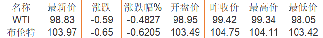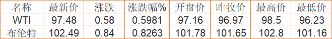 国际原油期货最新价格(2022年4月7日) 备注:以上国际原油价格仅供参考,请以官方价格为准。