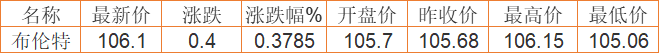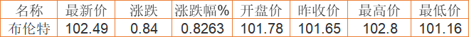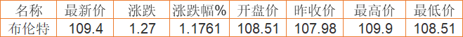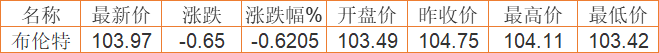 布伦特原油价格实时(2022年4月6日) 备注:以上国际原油价格仅供参考,请以官方价格为准。
