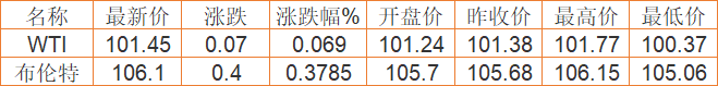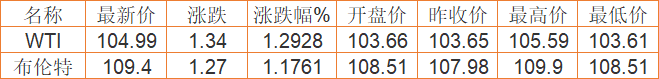 国际原油期货最新价格(2022年4月4日) 备注:以上国际原油价格仅供参考,请以官方价格为准。
