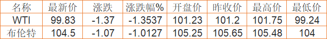 国际原油期货最新价格(2022年4月1日) 备注:以上国际原油价格仅供参考,请以官方价格为准。
