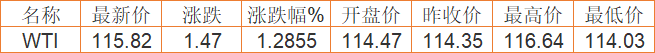 国际原油期货最新价格(2022年3月24日) 备注:以上国际原油价格仅供参考,请以官方价格为准。