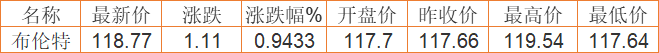 布伦特原油价格实时(2022年3月24日) 备注:以上国际原油价格仅供参考,请以官方价格为准。