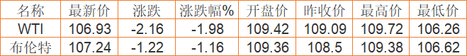 国际原油期货最新价格(2022年3月15日) 备注:以上国际原油价格仅供参考,请以官方价格为准。