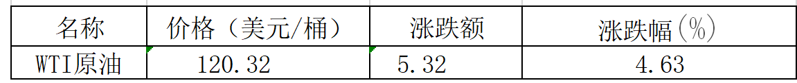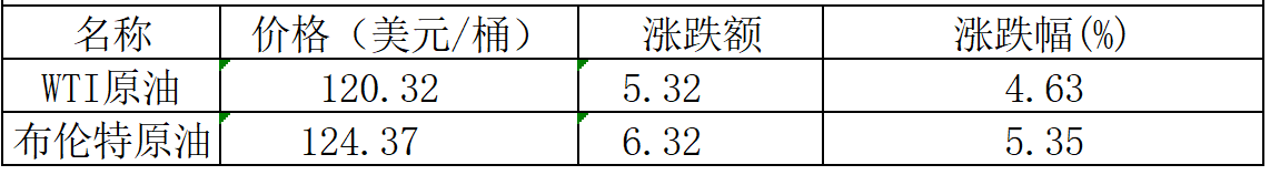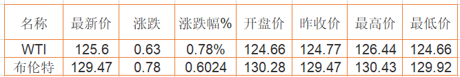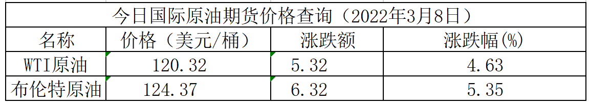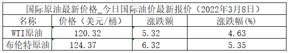 国际原油期货最新价格(2022年3月9日) 备注:以上国际原油价格仅供参考,请以官方价格为准。