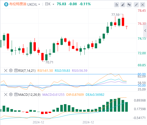 然而,从技术面来看,相对强弱指标(RSI)非常接近超买区域,技术面已经开始变得具有挑战性。因此,即使原油基本面继续走强,当价格触及目前位于79.14美元的200日移动均线时,也可能会经历一些回调。因此,布油价格可能会在70美元区间的高端震荡一段时间,然后才会突破80美元区间。
