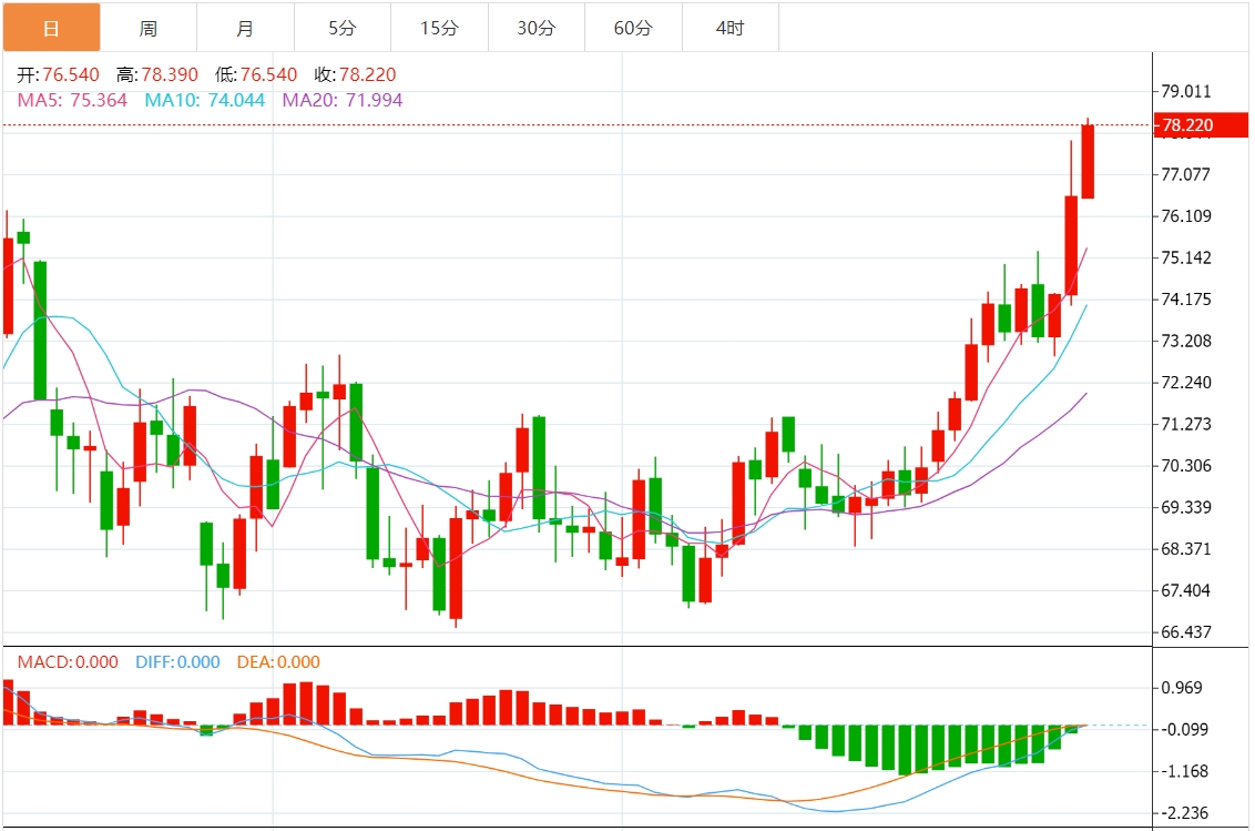 技术上,技术层面上,美原油冲高测试下降趋势线之后回踩均线支撑,目前依然在多头区间之内。且均线缓慢上移,MACD指标继续走高,不排除再次测试下降趋势线的可能性,而基本面上,因美欧冬季供暖需求回升,推动油价走强。
