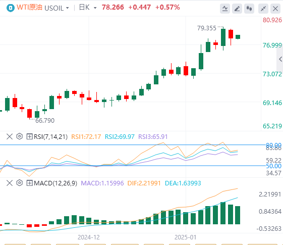 由于以色列和激进组织哈马斯在加沙的战争达成停火协议后,预计胡塞武装将停止在红海的航运袭击,WTI价格走低。截至目前,WTI原油报价78.22美元,Brent原油报价80.75美元。