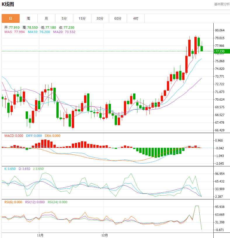 2、下方短期关注77.0-76.0一线支撑。