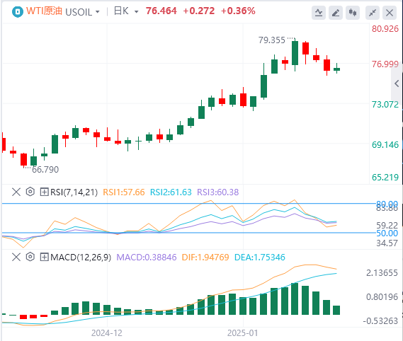 38.2%的水平为每桶79.11美元,然后50%的扩展为每桶80.06美元。更强的看涨势头可能会使其升至每桶81美元附近的61.8%水平或每桶82.18美元附近的76.4%水平。完全延期为每桶84.07美元。
