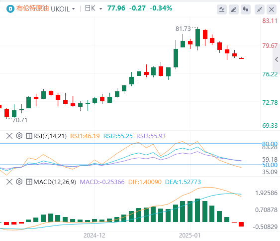 油价延续跌势至一周新低,交易员评估美国总统唐纳德·特朗普提议的关税可能如何影响全球能源需求和经济。截至目前,WTI原油报价74.97美元,Brent原油报价77.96美元。