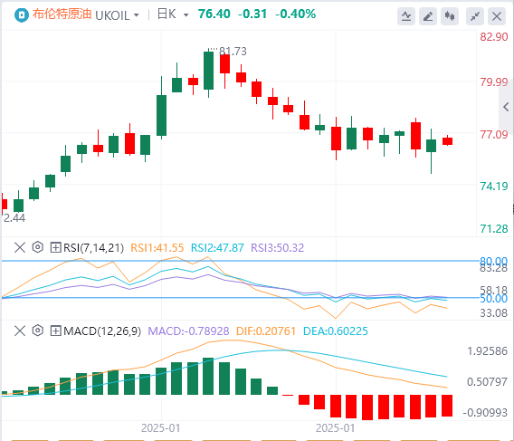 首先,各周期均线呈典型的对峙格局,50日均线作为短线多空分水岭,若油价再度回调需要展现出有效支撑,否则可能引发向78.6%斐波那契回撤位70.03美元的深度调整。上行方面,突破近期高点73.93美元将激活反弹动能,但上方200日均线74.95美元与20日均线75.95美元构成强阻力带。特别是本周初时,油价在20日均线下方的75.82美元受阻回落,显示出该区域存在密集的抛压。