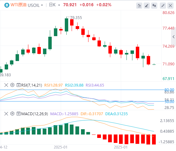 WTI原油在其每日时间框架内继续走低,此前最近从每桶80美元附近的下降通道顶部反弹。价格可能会在接近每桶70-71美元左右的感兴趣通道中区域时找到一些支撑。