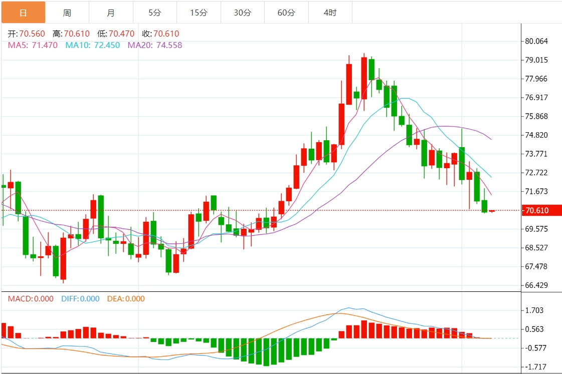 技术上,展望后市,只要价格低于73.15美元的200小时移动平均线,卖方仍占据更多主导权。价格需上破 100 小时移动平均线(72.69 美元),进而突破200小时移动平均线,才能削弱看跌倾向。下行方面,下一个目标位在70.64 美元。若跌破该价位,将开启更大的下行空间。