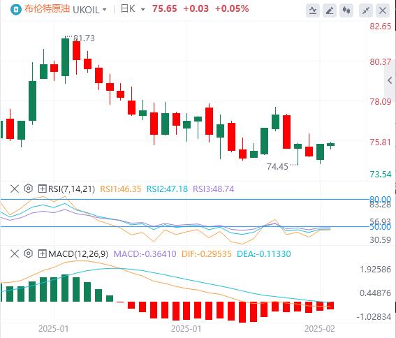 交易商正关注潜在的供应中断风险,布伦特原油价格突破75.00美元。当前需要关注其在50日均线75.86美元的突破情况,若能企稳在上方,将打开通向77-77.50美元阻力位的大门。