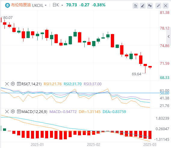 由于地缘政治担忧、OPEC+宣布增产以及美国对加拿大、墨西哥和中国征收关税,WTI价格吸引了一些卖家。截至目前,WTI原油报价67.47美元,Brent原油报价70.73美元。