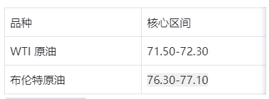 WTI原油晚间大概率维持71.5-72.3美元区间震荡,若跌破71.50美元支撑,可能触发止损盘推动价格下探70.80美元;若突破72.30美元,短期或指向73.00美元。布伦特原油则在76.3-77.1美元区间整理,突破方向需等待供应端消息或需求数据催化。