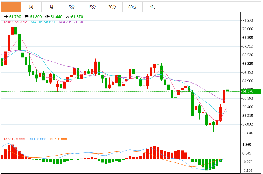在下行方面,周四的低点附近59.60美元被视为即时支撑,随后是57.00美元和5月的波动低点约55.00美元。