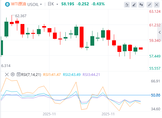 原油价格因乌克兰-俄罗斯可能停火的报道而下跌,尽管由于美国感恩节假期,整体交易依然疲软。截至目前,WTI原油报价58.19美元,Brent原油报价62.07美元。