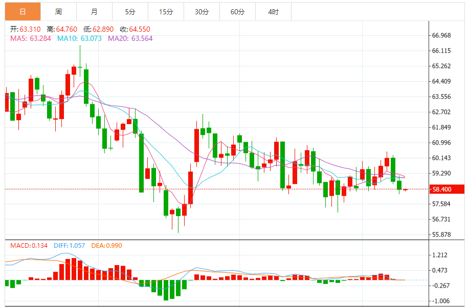 周三(12月10日),美原油价格交投于58.350美元/桶附近,涨幅为0.14%。