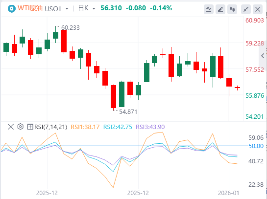 随着原油库存报告显示下跌幅度比预期更剧烈,WTI价格有所回升。交易员将更多参考将于周五晚些时候公布的12月美国就业数据。截至目前,WTI原油报价56.31美元,Brent原油报价60.48美元。