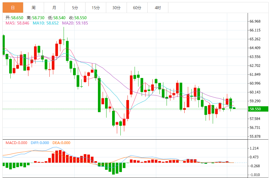 周一盘中,WTI原油报59.100,涨幅0.96%。 今日分析:在59.05之上,看涨,目标价位为60.10,然后为60.50。 技术点评:超短线(当日内)技术指标运行趋势复杂,应谨慎操作。 支撑位:59.0558.7058.25 阻力位:60.8060.5060.10 (亚汇网编辑:冰凡)