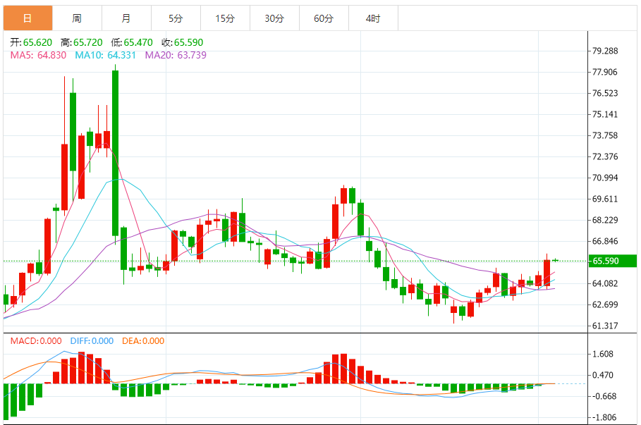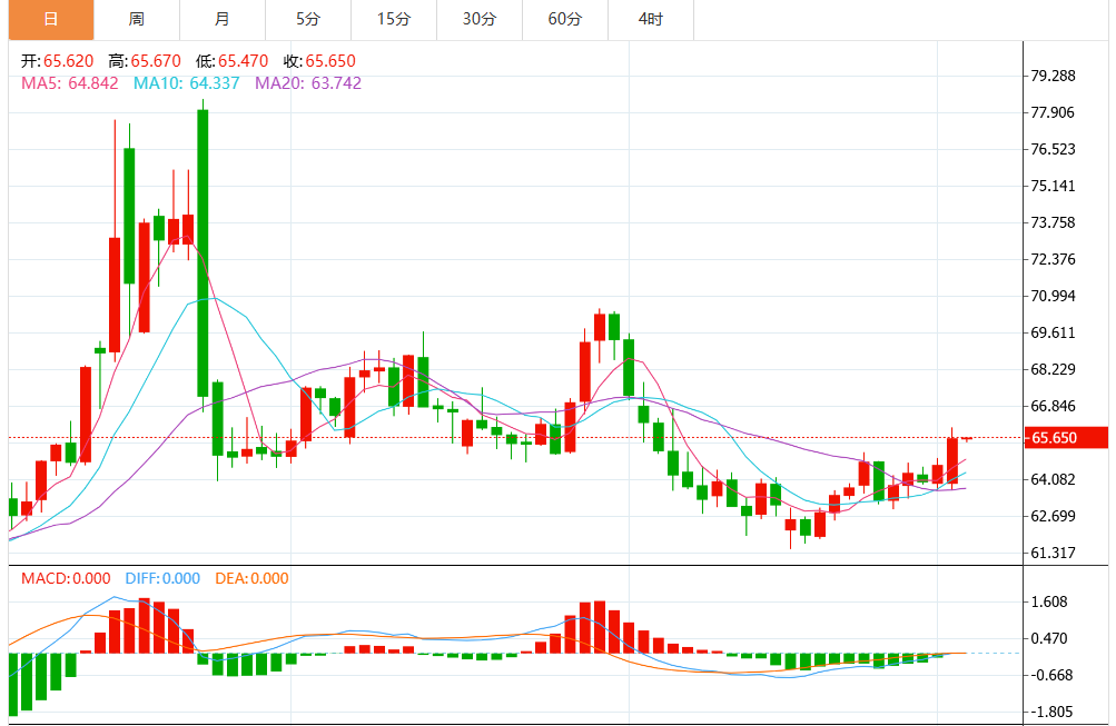 基本消息面 全球基准布伦特原油周一收盘上涨1%,因市场担忧俄乌冲突加剧可能导致供应中断,且美元走弱为其提供了额外支撑。布伦特原油期货收盘上涨67美分,涨幅1%,至每桶68.15美元。截至美国东部时间下午2:15,美国基准西德克萨斯中质原油期货合约上涨67美分,涨幅1.1%,至每桶64.68美元。 相关新闻消息