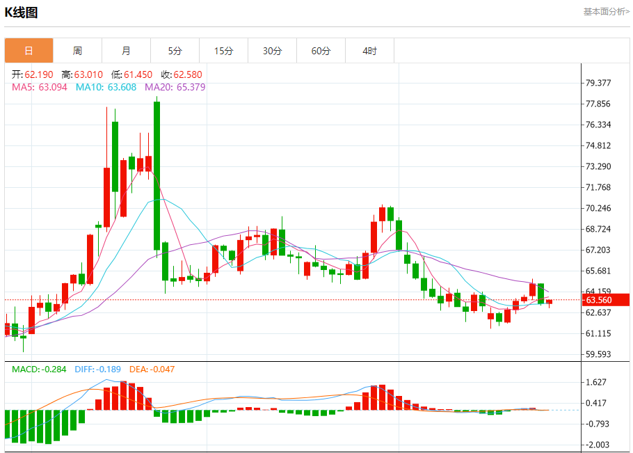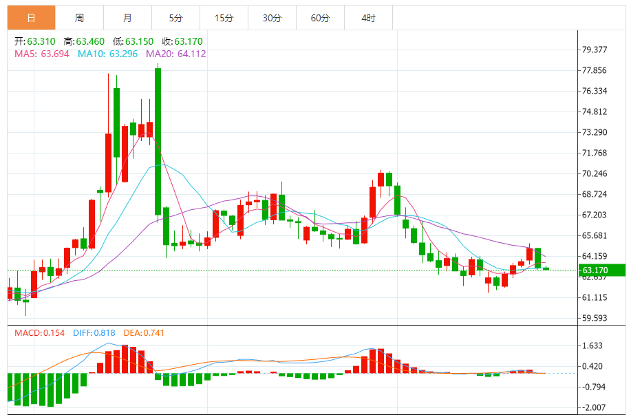 基本消息面 油价周三上涨1.3%,收于每桶64美元以上,此前美国原油和燃油库存下降,缓解了投资者对供应过剩迫在眉睫的担忧。 相关新闻消息 尽管本月价格仍在5美元的区间内波动,但衡量供应紧张程度的指标——WTI原油的所谓即期价差扩大至一周多以来的最大水平。此前美国政府报告显示关键储油中心俄
