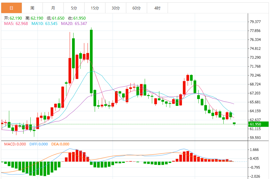 基本消息面 周二(8月19日),美原油价格交投于62.420美元/桶附近,跌幅为0.45%。周一(8月18日)美市盘尾,国际油价延续震荡上涨走势。布伦特原油期货下跌0.39%,报每桶65.59美元;美国西德克萨斯中质原油下跌0.19%,报61.86美元。 投资者普遍认为,短期内原油市场的最大不确定性来自美国政策立场的转变