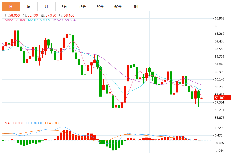 基本消息面 原油价格下跌,有迹象显示乌克兰和俄罗斯和平谈判取得进展,导致对俄罗斯原油供应将维持正常的预期上升。 WTI原油期货下跌1.5%,结算价接近每桶58美元,为一个月来最低水平,因为旨在结束乌克兰冲突的谈判显示出取得进展的迹象。原油价格日内早些时候曾大跌,因为ABCNw报道称,基辅已同意一份