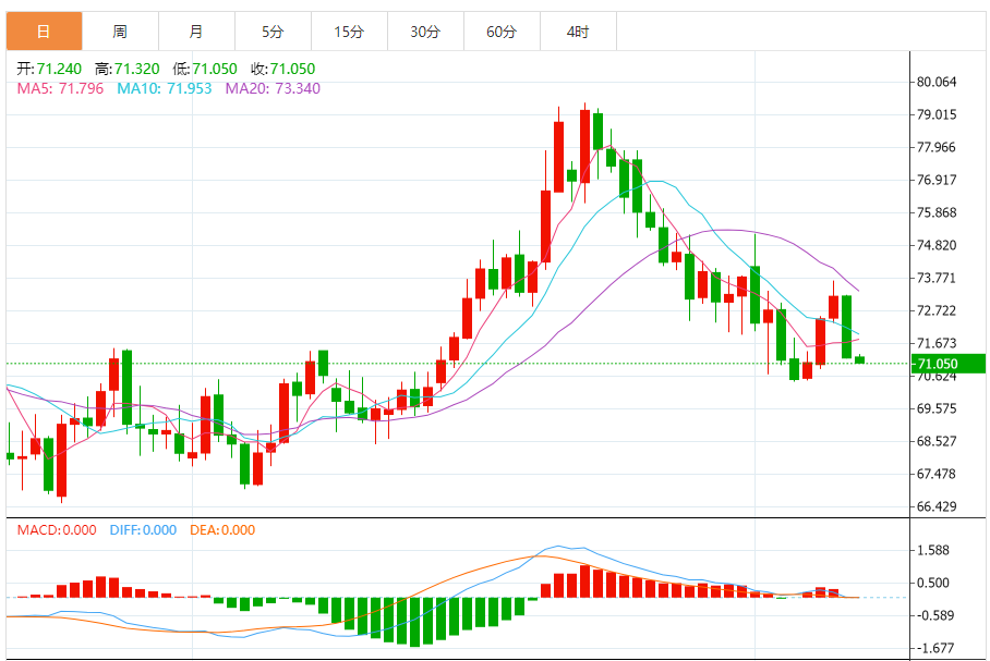 2月14日,周五亚市盘中,原油交易价格约为71.16美元。由于美国总统唐纳德·特朗普宣布的美国关税至少推迟到四月,WTI价格小幅上涨。 特朗普周四命令他的政府考虑对众多贸易伙伴征收对等关税。然而,商业和经济官员需要研究对对美国商品征收关税的国家征收的对等关税,而且要到4月1日才能到期。希望世界可以避免贸易