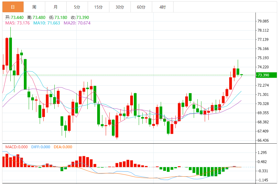 1月8日,原油价格延续前一交易日的反弹势头,继续上涨,这主要得益于行业数据显示美国原油库存下降。 今日原油价格技术分析: 技术面上看,昨日国际油价企稳73.1关口延续多头强势反弹回升,晚间美盘原油价格进一步发力,站上74关口后延续强势震荡,日K线报收探底回升反包中阳。今日油价短线关注下方73.5-73.3