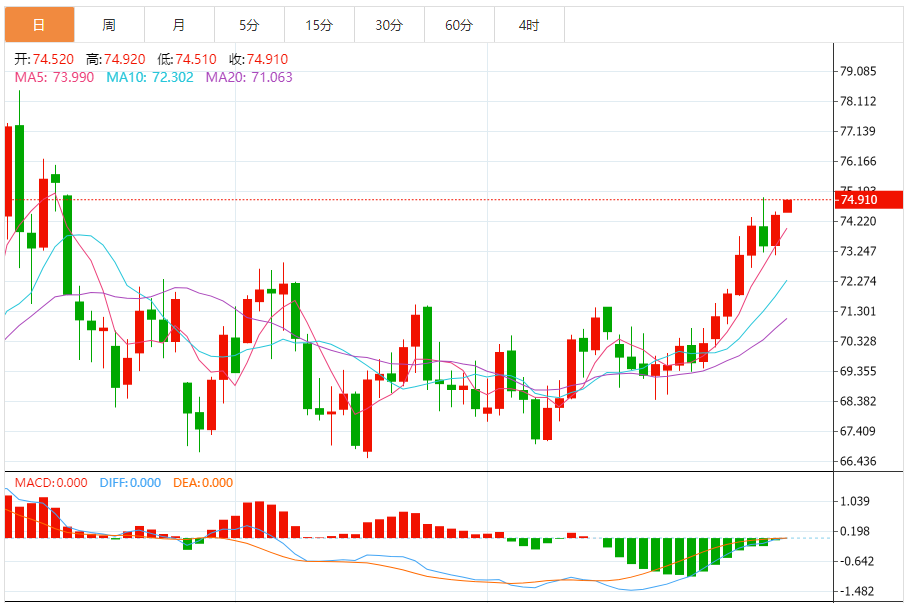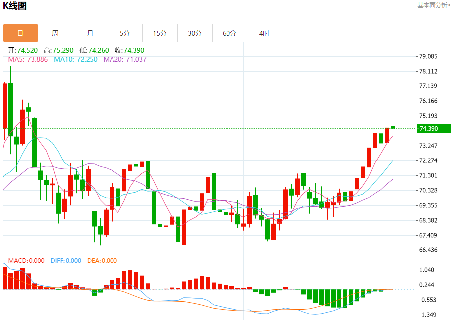 基本消息面 原油价格周二上涨,美国遭遇冷空气袭击和市场供应收紧迹象的影响抵消了原油涨势可能过头的技术信号。 相关新闻消息 WTI原油上涨接近1%,收于每桶74美元上方。美国的寒冷天气刺激了对取暖燃料的需求,也带来了石油生产受到干扰的风险。周一原油未能突破75美元心理关口而出现六个交易日来