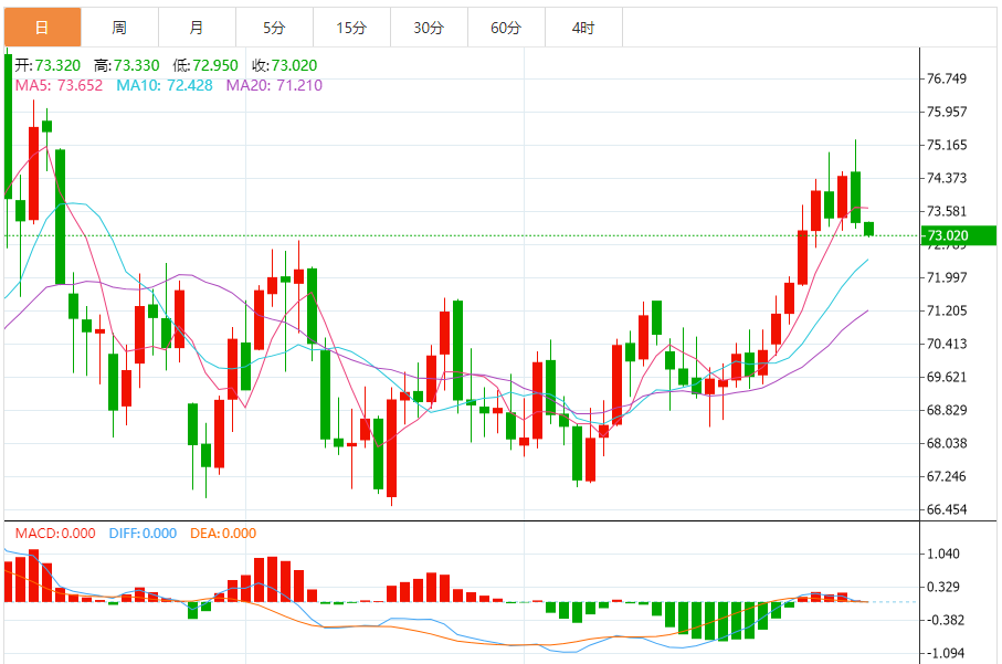 基本消息面 原油价格周三下跌,美国原油供应持续收紧迹象所推动的涨势在关键技术位遇阻。 WTI原油期货下跌超过1%,收于每桶74美元下方,此前一度涨至大约75.48美元的200日移动均线附近。 相关新闻消息 由于未能突破这个关键技术水平,油价收盘比盘中高点下跌了接近2美元。自去年10月以来,W