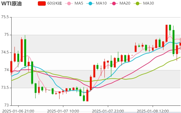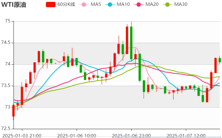 1月8日,周三亚市盘中,原油交投74.06附近。由于预期中国需求增加和美国原油库存跌幅更大,WTI价格小幅走高。 上周美国原油库存大幅下降为WTI提供了一些支撑。AI周报显示,截至1月3日当周,美国原油库存减少402.2万桶,而前一周减少144.2万桶。市场共识估计库存将减少250,000桶。此外,中东地缘政治紧张局势升级和持