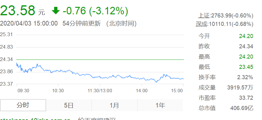 4月3日沪电股份股票收盘价23.58跌幅3.12%。