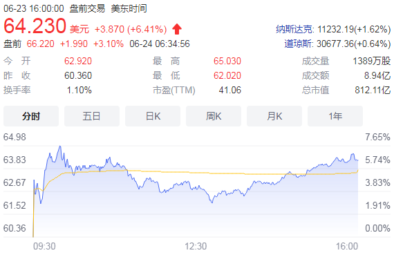 北京时间6月22日,美股集体涨超2%,能源和非必需消费品领跑,科技和中概亮眼,截至收盘,标普、纳指和纳指100均连涨两日,道指止步两连跌,均收复6月15日以来大部分跌幅。 热门中概股格外亮眼。中概TFKWB涨近4%,CQQQ涨2.5%,纳斯达克金龙中国指数(HXC)涨近5%。纳斯达克100四只成份股中,拼多多涨超12%后收涨近7%,