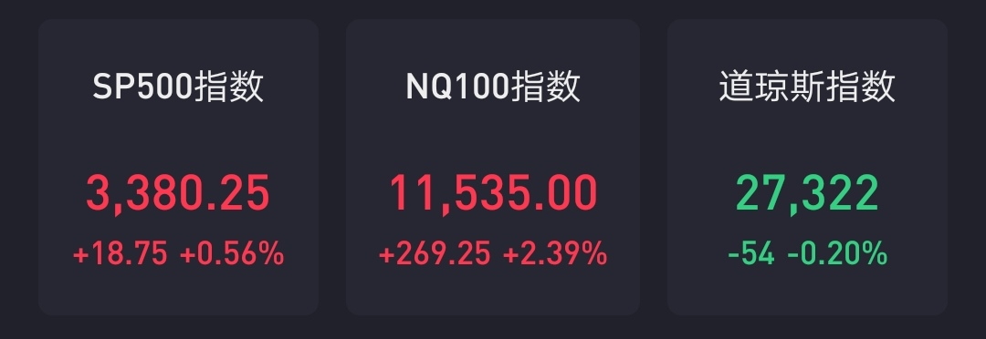 基本消息面 美股三大指数周三收盘全线收涨,纳指暴涨近4%,得益于大型科技股纷纷大涨,但美国大选选情仍胶着结果未定。恐慌指数VIX跌16.82%,报29.57点。 截至收盘,道指涨367.63点,报27847.66点,涨幅为1.34%,盘中一度涨超800点纳指涨430.21点,报11590.78点,涨幅为3.85%标普500指数涨74.28点,报3443.44