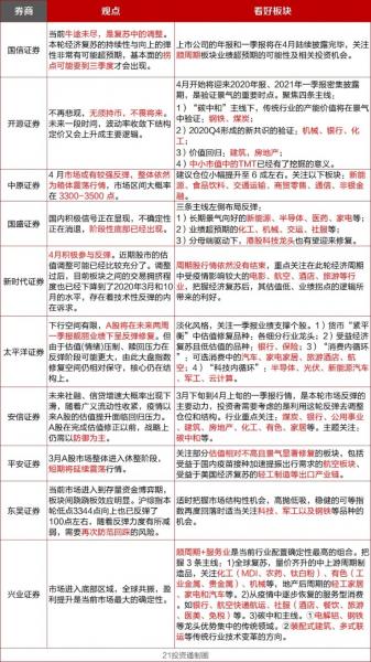而随着4月份的到来,上市公司的年报和一季报陆续披露完毕,券商建议关注业绩表现好,市盈率处于中低水平且滞涨的个股。板块方面,券商继续看好周期股,重点关注化工、 银行、航空。
