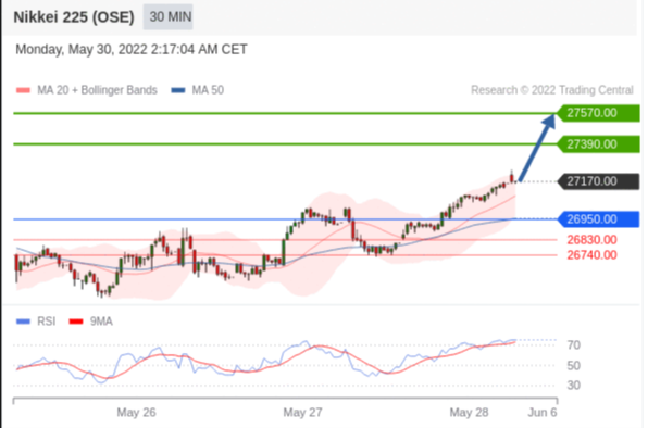交易策略: 在 26950.00 之上,看涨,目标价位为 27390.00 ,然后为 27570.00 。