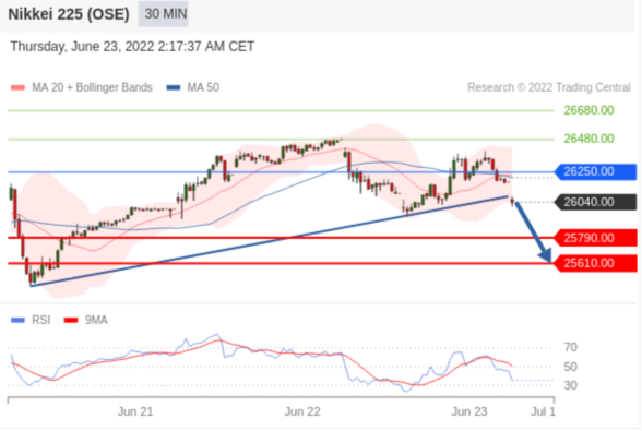 交易策略: 在 26250.00 之下,看跌,目标价位为 25790.00 ,然后为 25610.00 。