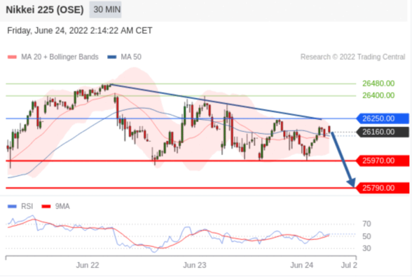 交易策略: 在 26250.00 之下,看跌,目标价位为 25970.00 ,然后为 25790.00 。
